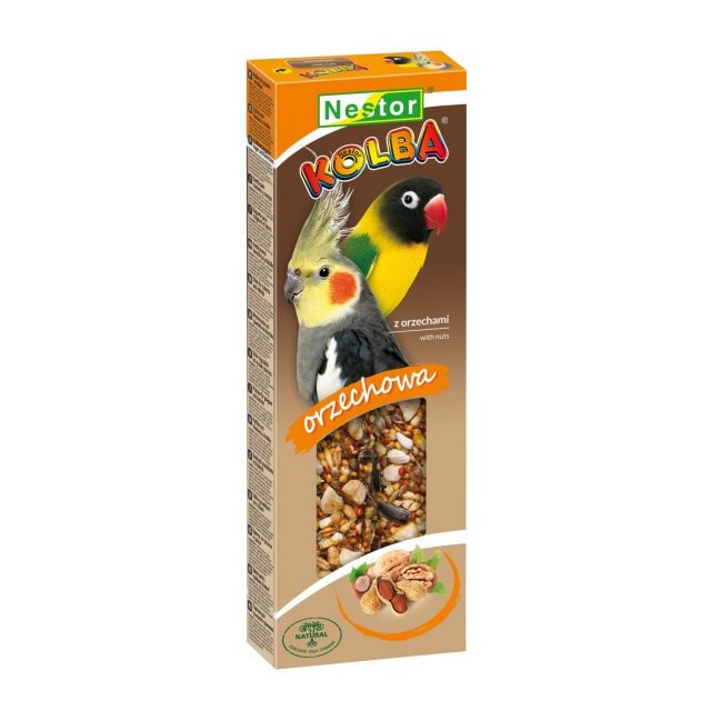 Kolba ziarnowa to niezwykły pokarm, którego wszystkie składniki zostały starannie dobrane zgodnie z potrzebami i upodobaniami Twojego ulubieńca. Jest doskonałym źródłem niezbędnych dla prawidłowego rozwoju organizmu witamin, mikro- i makroelementów. Kolba, dzięki stanowiącej jej trzon drewnianej listewce, pomaga ścierać przerosty dzioba. Ponadto ptaki wyskubują ziarenka samodzielnie, podobnie jak ma to miejsce w naturalnym środowisku. „Zdobywanie pożywienia” zmienia się we wspaniałą zabawę i przynosi radość.